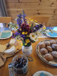 Le soir, notre table accueille entre dix et quinze personnes et nous la partageons avec nos hôtes. Nous cuisinons avec les produits de la ferme et ceux des producteurs locaux des spécialités franc-comtoises plus délicieuses les unes que les autres 🙂